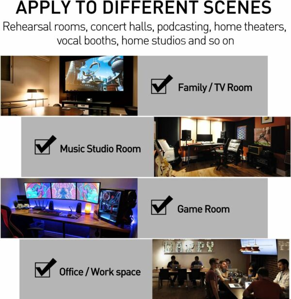 Wide Applications – Suitably used not only for spot treating sound on walls in your studio and office but also for use in recording studios, vocal booths, control rooms.