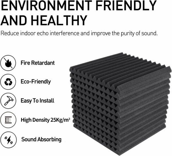 Soundproofing – Acoustic foam panels triangular grooves structure for better noise absorption, helps to reduce and absorb unwanted echoes, waves, reverb and flutter echoes for better recording effect.