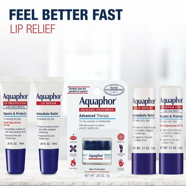 Soothes Chapped Lips: Aquaphor lip repair balm is clinically proven to relieve dryness and soothe chapped, cracked lips