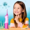 Loved by Kids – Pink Kids’ Water Flosser is the perfect addition to your child’s dental care routine! Designed for children ages 6 and up, this oral irrigator features a rubber grip, a simple 1-button operation, and comes with a waterproof sticker sheet. Kids can customize and decorate their flosser using four adorable characters: Rocco the Starfish, Ziggy the Seahorse, Ruby the Dolphin, and Leo the Shark.
