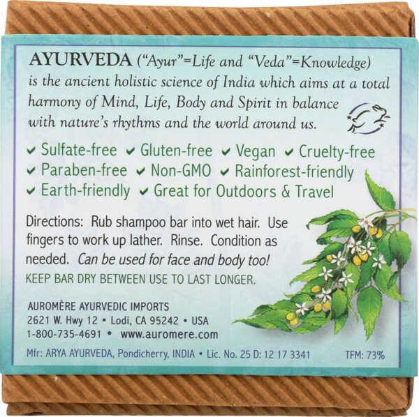 CLEAN & PURE: Auromere shampoo bars and soaps are vegan friendly and cruelty-free, and are made without the use of artificial fragrances, dyes, or bleaches. The ingredients are non-GMO, paraben-free, gluten-free, and sustainably produced.