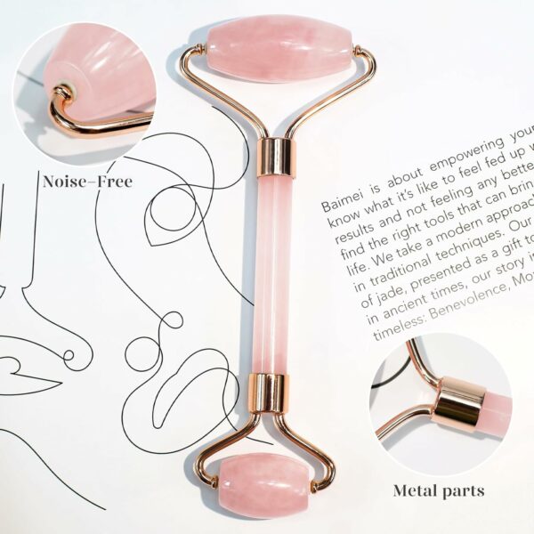 [Energized Skin] The at-home face massager is made of rose quartz. The face & eye roller is sturdy and no squeaky. The jade face roller is very smooth. It provides cooling and energizes the skin