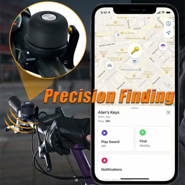 【Waterproof bicycle bel】l: This bell is equipped with an excellent sealed waterproof rubber ring to protect your AirTag from rain, no fear of daily rainy weather riding. With this waterproof bell, you can enjoy the fun of riding in various weather conditions. Please note that it cannot be exposed to heavy rain for a long time.
