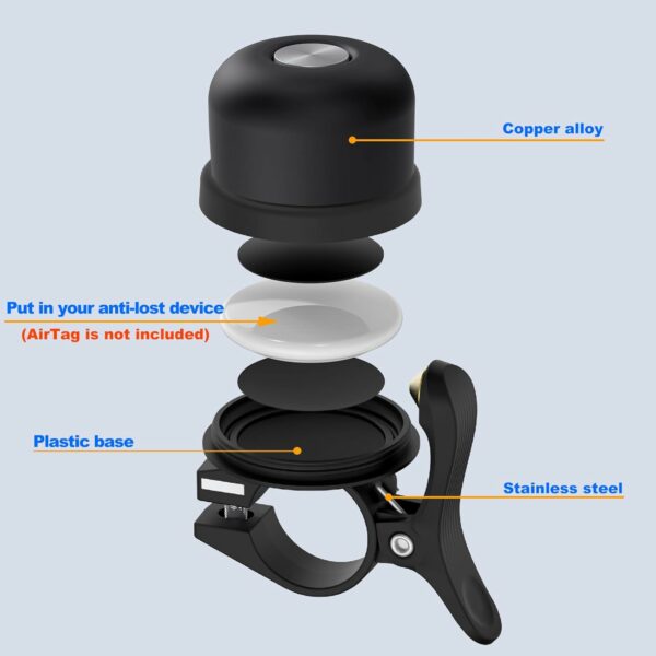 【Hidden Design AirTag Bike Bell】The anti-theft design of this bicycle bell makes your tag invisible. If lost or stolen, simply hide your airline tag inside the bell for easy tracking (airline tag not included). This discreet design keeps your airline tag safe while also being a classic bicycle bell.