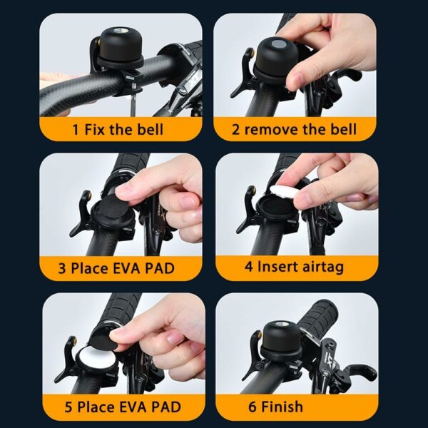 【High-quality Materials】: LESOVI AirTag bicycle bell is made of high-quality brass alloy, the sound is clear, loud and long-lasting. With a wrap-around design, high-strength springs and a lightweight and sturdy alloy bracket make it durable. The soft silicone layer keeps the bicycle bell in place and protects the bicycle from being scratched.