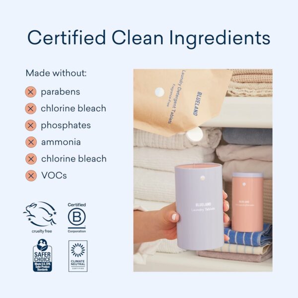 CLEAN INGREDIENTS. Hypoallergenic, plant and mineral based cleaning power free from fragrance, dyes, and optical brighteners.
