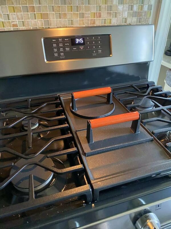 【EQUALIZED WEIGHT DISTRIBUTION FOR PERFECT GRILL MARKS EVERY TIME】: Pre-heat your beautiful Firsgrill Press on the pan. Then apply the equalized Heavy pressure to your food of choice for a short time. When you remove it, smile at the beautiful creation you’ve made. Share it with loved ones or have it all to yourself.