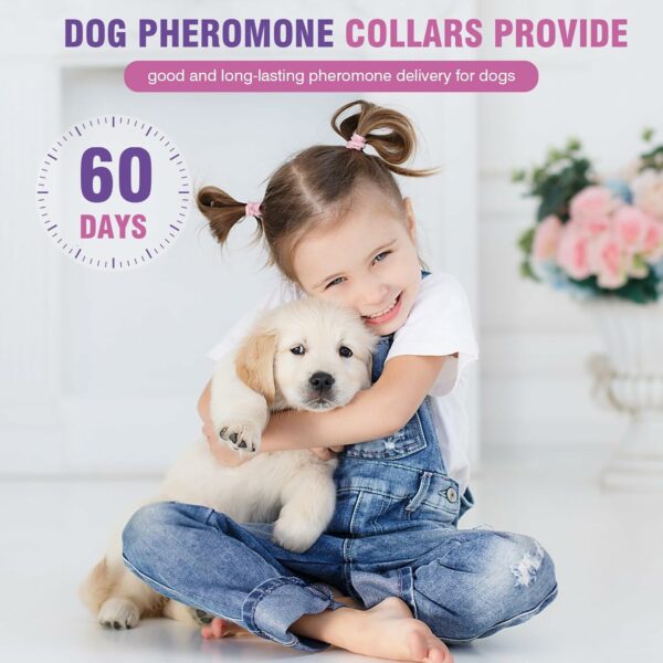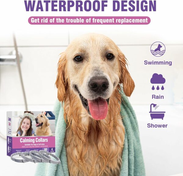 [Calming collar for dogs-Calm Lasts 60 Days] Calming collar for dogs releases pheromones for dogs continuously for up to 60 days, dog calming collar releases dog calming pheromone quickly, dog pheromone collar provides high quality and longer lasting pheromone delivery. Dog pheromone collars can be worn continuously for best results. Calming dog collar is waterproof so there is no need to remove dog calming pheromone collar when taking a bath or playing in the rain