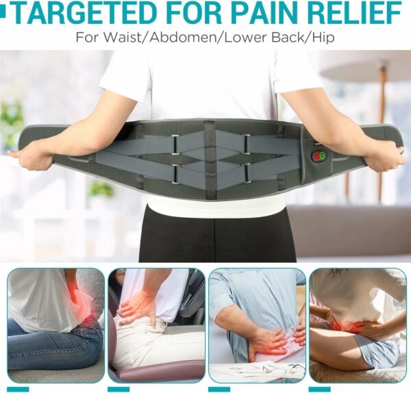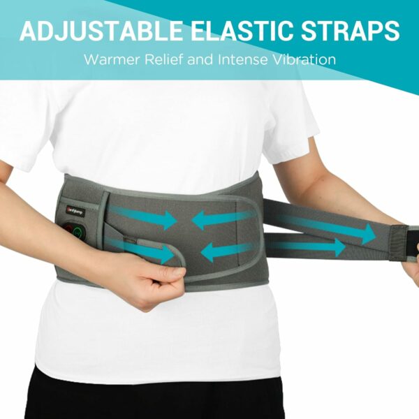 Upgrade Elastic Straps: Brandnew dual adjustable elastic strap of the back heating pad brings warmer relief and intense vibration. The heated belt better fits around your waist by adjusting the compression and size.