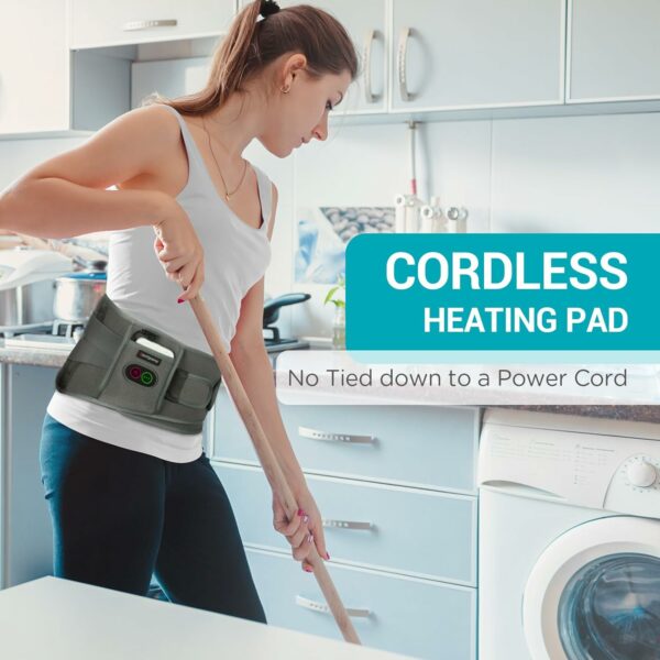 Cordless and Portable: Comfytemp portable heating pad is 5000mAh battery operated (included). It’s not to be tied down to a power cord anymore. Use it freely when doing housework, driving a car, or working on the computer.