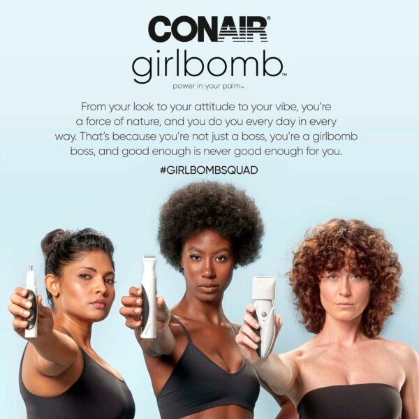 GIRLBOMB boss—safely, easily, and precisely: Designed for the girl who expects the best and gets it, this 3-in-1 trimmer makes it easy to trim nose and facial hair, shape and define your brows, and look GIRLBOMB boss beautiful.