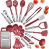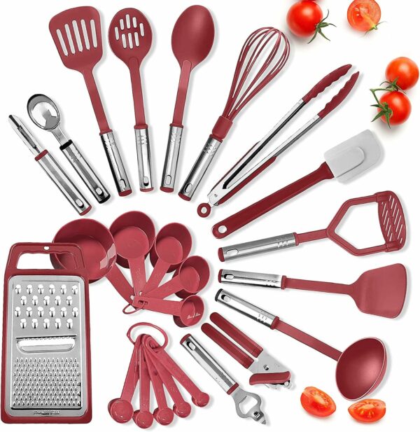 Eatex Kitchen Utensil Set – 24 Piece Nylon & Stainless-Steel Red Cooking Utensils Set, Non-Stick & Heat Resistant Red Utensil Set – Useful Kitchen Gadgets and Tools