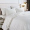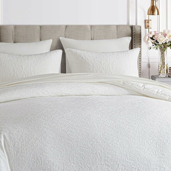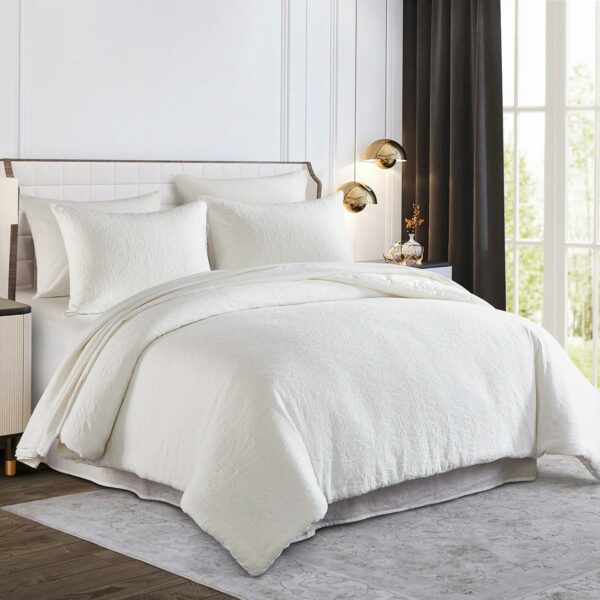 [High quality material] This cotton comforter is covered by 100% cotton top fabric and filled with 300gsm whole-piece down alternative microfiber Filling material. Our jacquard comforter set ensures a gentle caress against your skin, promising nights of undisturbed slumber. And all the material passed OEKO-TEX 100 certification.