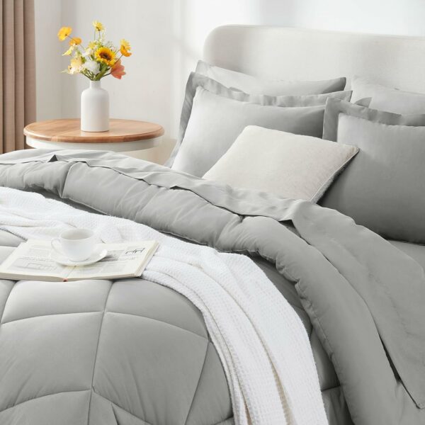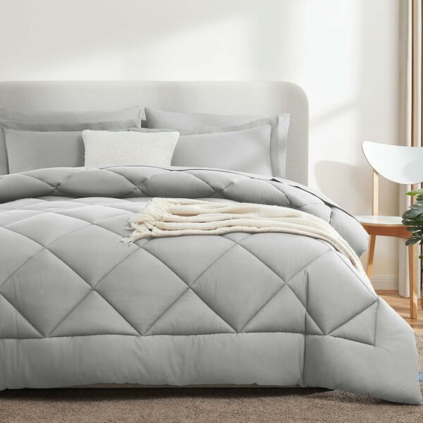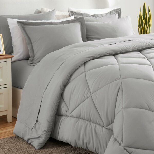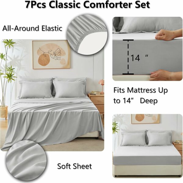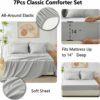 Elaborate Design: The elastic deep pocket fitted sheet fits mattress max up to 16″ deep. That can always keep non-slip no matter how you twist and turn in your bed. The comforter features durable box stitching which offers sophisticated look alongside simplicity and will also stable inside filling