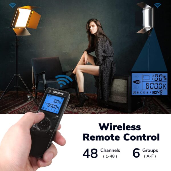 【Wireless Remote Control】: The 2.4GHz remote allows you to freely control the light settings and switch between 48 channels & 6 groups, wirelessly and accurately. (Please note: The remote cannot turn off the light, it can only adjust the brightness to 0%. You need to turn off the light manually).