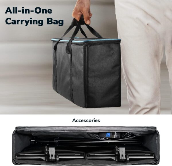 【Compact and Portable】: The kit comes with a durable carrying bag that can store all accessories, making it easy to take with you wherever you go. The package includes 2 x 45W LED lights, 2 x 74″ aluminum alloy stands, 2 x power adapters, 2 x power cables, 1 x remote, 1 x carrying bag, and 1 x user manual.