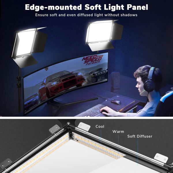 D50 Photography Lighting with Barn Door, 2-Pack 15.4″ LED Vi…