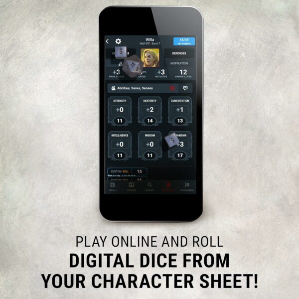 USE D&D’S OFFICIAL ONLINE TOOLSET—D&D Beyond is the official online platform and digital toolset for Dungeons & Dragons, including a character builder, Encounters tool, digital character sheets with integrated dice rolling, and searchable listings