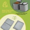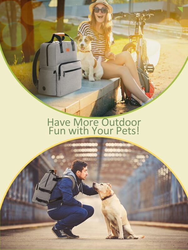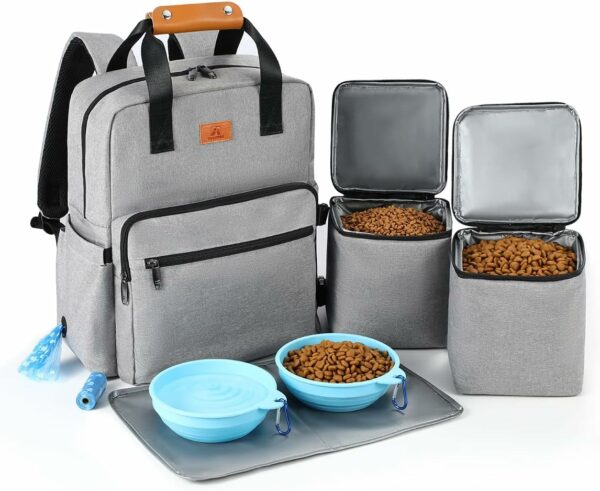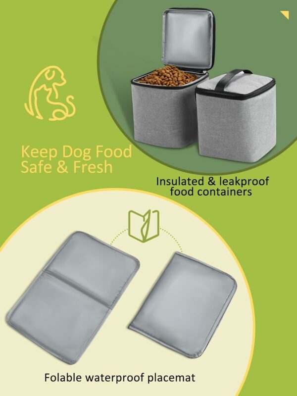 Keep Dog Food Fresh: Two large dog food containers can hold up to a week’s worth of food depending on the dog. And the food carriers are fully insulated and leak-proof, keeping your pooch’s food/treats fresh and safe no matter where you go, on a hillside or the beach.
