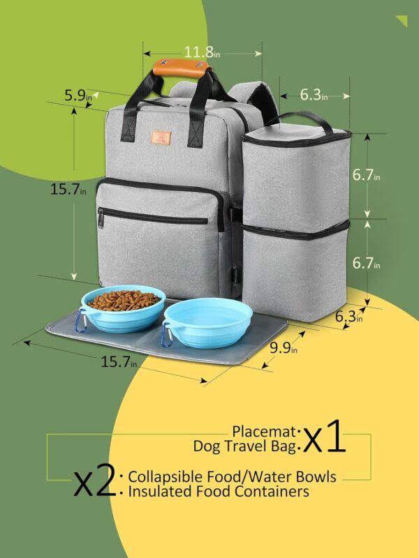 Make Dog Feeding Easier: Two premium silicone food/water bowls and a waterproof placemat let you feed your pup easily without making a mess. When collapsed, the lightweight silicone bowls with carabiners are easy to stash inside the dog overnight bag, attach to the dog bag exterior, or clip onto your dog’s collar.