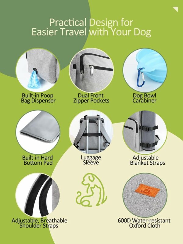 Durable, Water-Resistant Dog Travel Bag: Made from heavy-duty 600D Oxford cloth that’s anti-tear, water-resistant, highly durable, and easy to clean. This puppy travel bag is built to withstand the rigors of regular travel and ready to go wherever your fur baby goes!