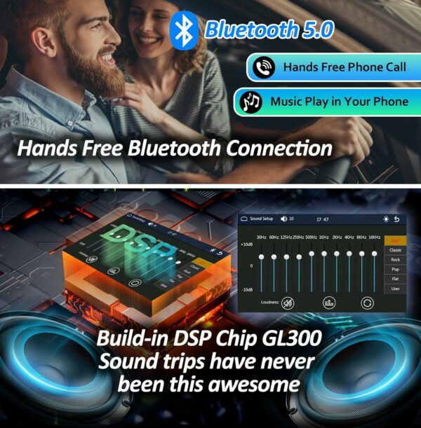 Built-in DSP smart chip, 10 bands EQ adjustment, this stereo lets you enjoy crisp and clear sounds while you drive. It also offers a wide range of multimedia input.