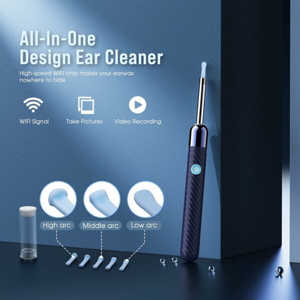 3 Kinds of Radian Ear Scoop: The ear cleaner adopts rotatable metal ear scoops, which can be tightened to prevent falling off. Use a silicone ear scoop cover over the ear scoop to prevent scratching the ear canal. You can choose the curvature of the ear scoop that suits you. Before use, please pay attention to tightly fit the silicone ear scoop on the ear scoop.