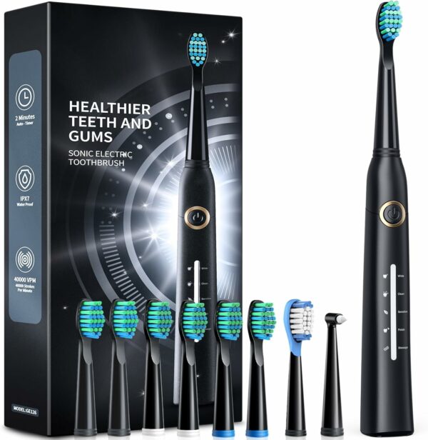 Healthier Gums- Equipped with a powerful and industry leading motor producing 40,000 vpm, this sonic electric toothbrushes for adults can effectively remove up to 99.99% plaques. Get a thorough ๏ผ๏ผ X cleaning effect than manual toothbrush, 6X than ordinary electric toothbrush