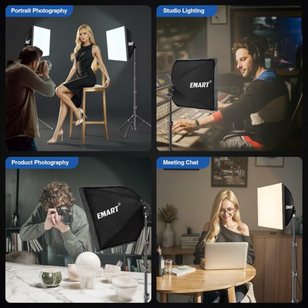 【Multiple scene applications】This softbox lighting kit is suitable for photography art,and meets the different needs of photography lighting,recording studio,live broadcasting,video fill light,etc. It can be applied to advertising products, industrial technology photography,children’s photography and small product photography, photographic reproduction,etc