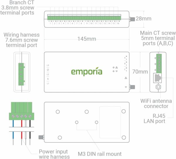 APPLIANCE MONITORING WITHOUT GUESSWORK: Comes with sixteen branch (50A) sensors to accurately monitor your critical loads like air conditioner, furnace, water heater, washer, dryer, range, etc. New and improved screw terminals / ports allow CT wires to be trimmed to reduce panel clutter.