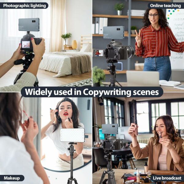 【Compact & Premium】Made of high-strength aluminum alloy, which is moisture-proof and resistant to falls. Dimensions (5.9″x 3.0″ x 0.4″), weight (7.65oz). Easily mountable on digital SLR cameras, camcorders, tripods and lamp holders. Perfect for photography, videography, self-broadcasting, vlogging, YouTube, etc. The portable camera light will give you the perfect lighting to make your photos and videos more attractive