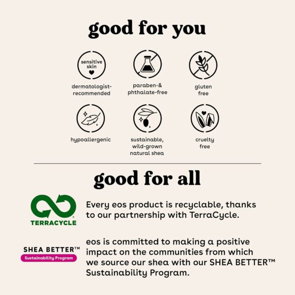 SUSTAINABLY-SOURCED INGREDIENTS: eos lip balms have wild grown, sustainably sourced, natural shea butter and oil to leave your lips smooth and nourished