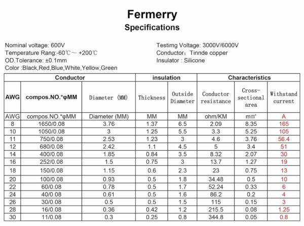 Application-Fermerry silicone wires are widely used in LED lighting, electrical and electrical equipment, aluminum batteries, RC batteries, model wiringz harnesses, instrumentation internal connections, large transformers and motors connecting equipment with wires,etc