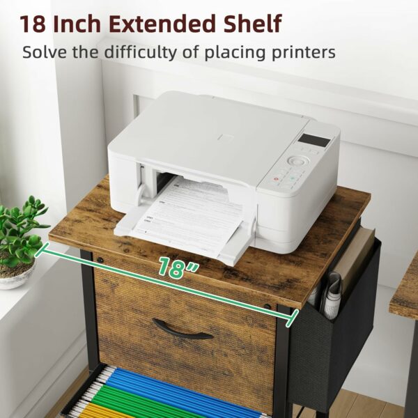 【18”*15” Spacious Tabletop】The tabletop of our 2-drawer vertical file cabinet is 18 inches extended, providing ample space for your printer (supported by 2 wooden boards). In comparison, other file cabinets only have a 15” tabletop. We offers generous storage space and can handle heavy loads effortlessly
