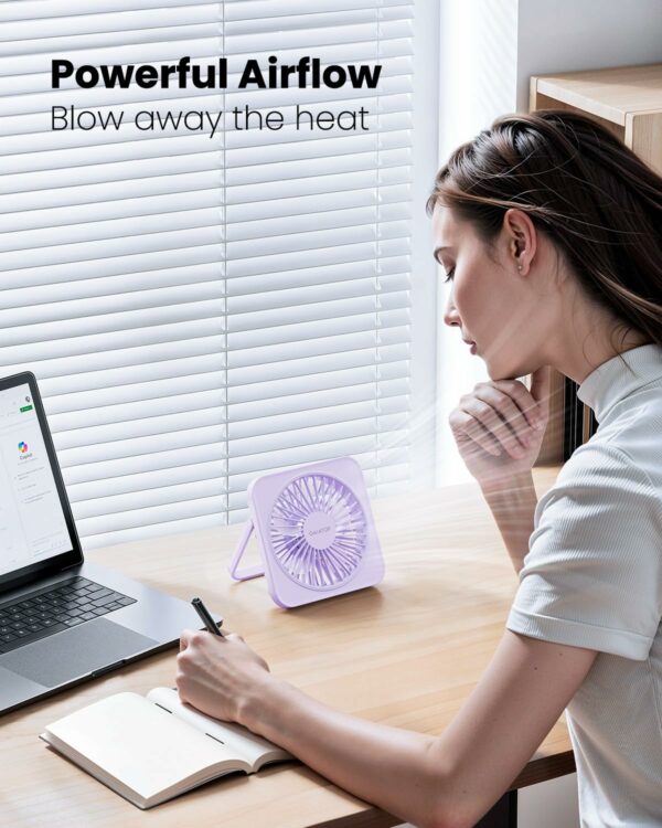 Mini Powerful Table Fan: 5-inch USB-powered desktop fan packs a punch with a strong airflow that keeps you cool and refreshed throughout the day, perfect for home, bedroom, bedside, office, desk, dormitory, and library, besides