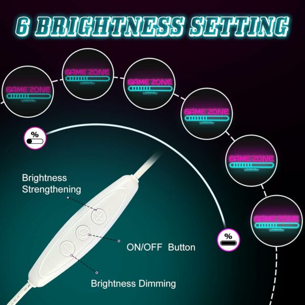[Adjustable lighting and USB-powered] : Our neon game room signage features high-quality flexible silicone LED strips and acrylic panels with six adjustable lighting bright modes for excellent light transmission and soft and even light. Using USB power supply, it is very convenient to carry. This game LED neon can be connected to rechargeable batteries, laptops, computers, etc., and will stay lit anywhere.