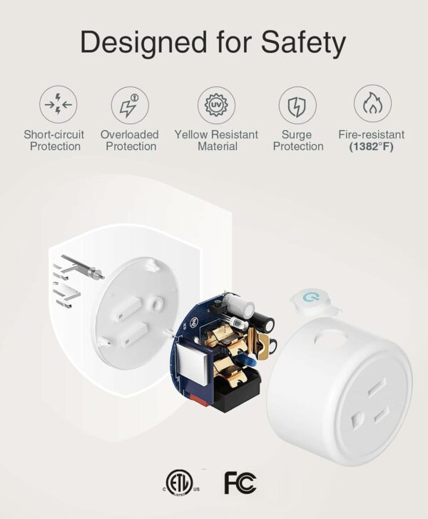 SAFE DESIGNED&QUICK CONNECTION: Simply plugin and keep the smart outlet connected to your stable 2.4GHz network, the improved WiFi technology let you quick connection and stay stable.