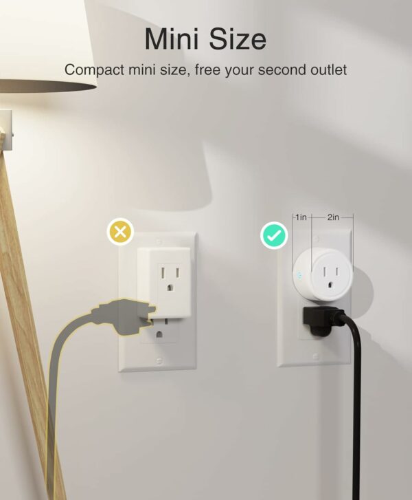 VOICE CONTROL WHEN YOUR HANDS ARE FULL: Smart plugs that work with Alexa and Google Home Assistant. Just give a simple voice command to control your home devices with smart outlets via Alexa or Google Home Assistant. No hub required easy to install the smart life plugs. Mini wifi outlet only works with stable 2.4GHz network