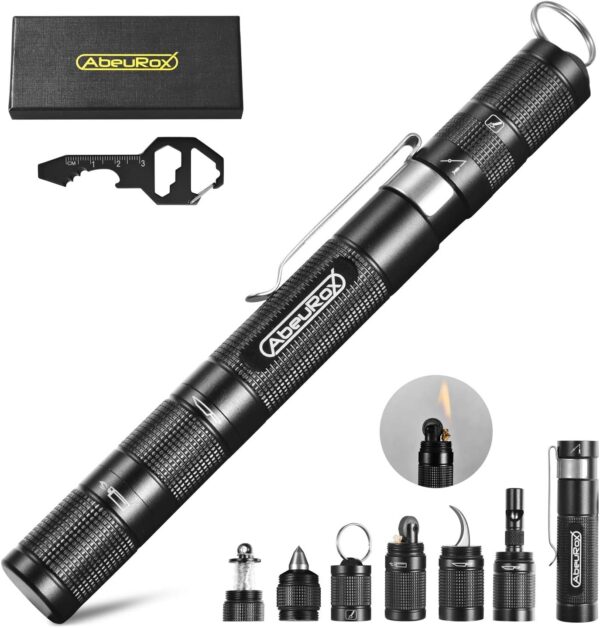 The AbeuRox AB-MTB-03 is a fresh new item launched recently after months of D&R, this unique product that firstly combines a Lighter, Fishing tool, Glass breaker, Whistle and other regular tools all in one. We collected the most frequently used functions and put them all in one as a single product. This item is in a portable size, easy carrying and very handy to use. It is transformable and interchangeable to different combinations based on how you want to use it.