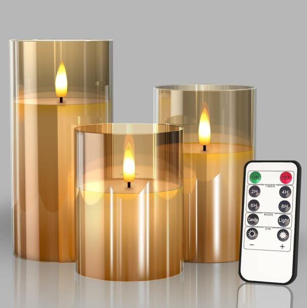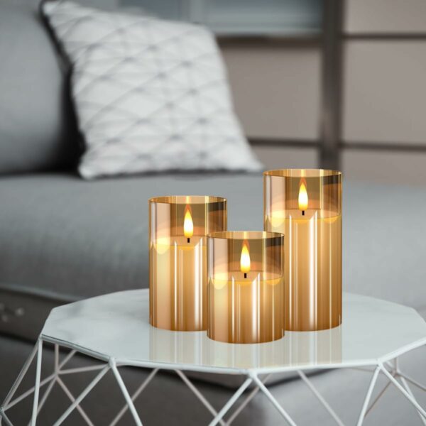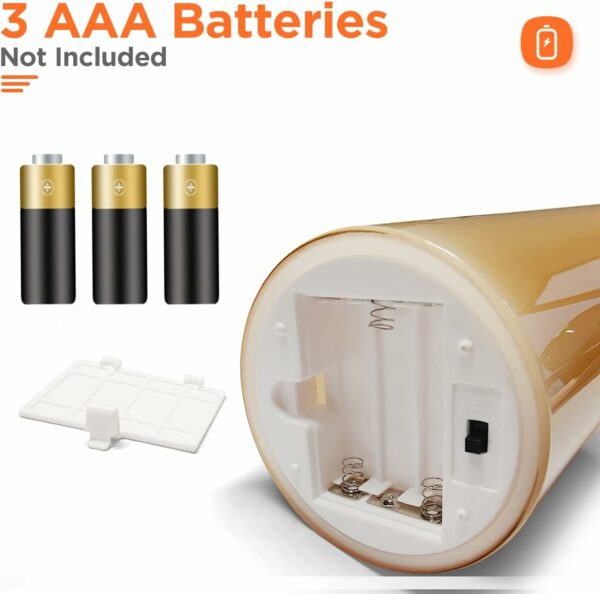 ENERGY SAVING, POWERFUL LEDS -These impressive candles require 3AAA batteries(not included) per candle, that are expected to last for about 150 hours, while the lifetime of the led lamps is up to 50,000 hours. Unlike real candles, these flameless pillar candles are made to last; you buy them once, you have them forever!