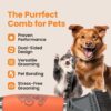Dual-Function Design for Comprehensive Care: Featuring a unique dual-function design, this comb includes a dematting side with serrated blades for cutting through tough mats and tangles, and a deshedding side with fine bristles that remove loose hair and debris. This versatile tool ensures comprehensive grooming, suitable for all coat types and lengths, from short-haired breeds to long-haired pets.