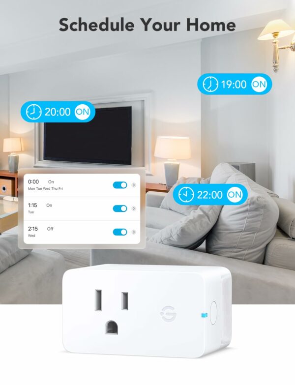 Scheduling & Group Control: Smart plugs with timer help create detailed to the minute schedules power your appliances on/off automatically for helping save energy and money. And supports share on the Govee Home App to enjoy the smart life together.