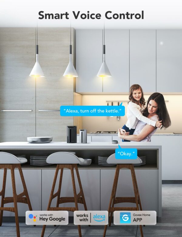 Safe and Comfortable Smart Home: Govee plug not only fully FCC & ETL certified, but also made of fire-resistant materials. 15A 120V smart outlet is suitable for high-power appliances such as coffee maker, brings you a stable and safe life assistant.