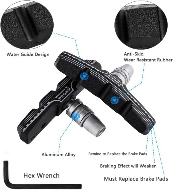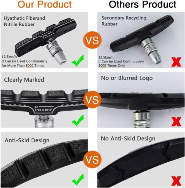 【HARD-WEARING MATERIAL】 The brake pads are made of hyathetic fiber and nitrile rubber, they have supreme durable and long-lasting than ordinary rubber. brake is a safety issue related to life, please do not use poor quality brake pads.