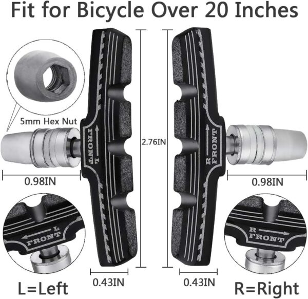 【BROAD COMPATIBILITY】 These brake pads are suitable for bike that above 20inchs and all v-brake systems, such as SRMA/SHIMANO/TEKTRO. now you don’t have to go to a bicycle shop, and you can buy the same quality as a name brand shop for less.
