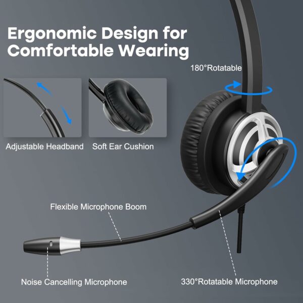 Crystal-clear Sound: Computer headset with microphone is specially designed for clear communication on computer softphone calls. The noise cancelling microphone blocks out unwanted background noise and pick up loud and clear sound