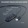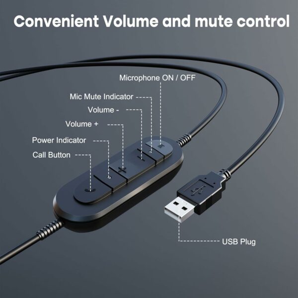 In-line Controls: This corded USB headset comes with in-line volume control and microphone mute to improve work efficiency. Office workers can easily adjust the volume up or down, mic on or off during the conference chat