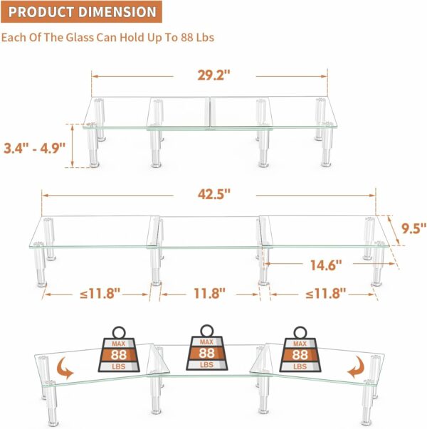 MULTI-FUNCTIONAL MONITOR STAND: 2 Monitor, TV or notebook computer is elevated to a proper ergonomic viewing position, creating best posture which helps reduce neck and back strain,Then stow laptop underneath monitor riser for space-saving storage