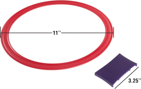 PRODUCT DETAILS – Material: Plastic. Dimensions: Rings-(Diameter)11”, Connectors (L)3.25”. Set comes with 10 rings in multiple colors and 15 connectors.