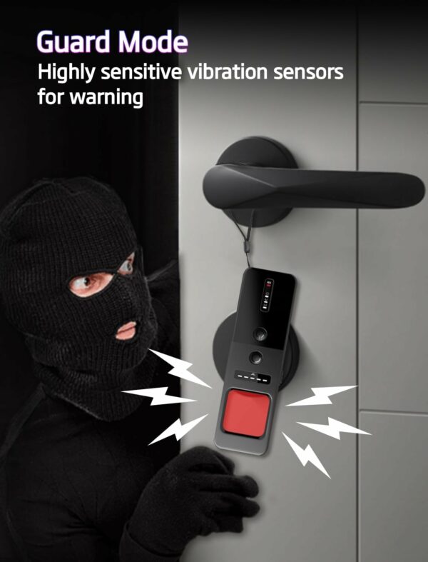 ✅【Advanced Vibration Detection】Unique vibration detection function that accurately detects nearby vibrations and alerts promptly. Effectively prevents intrusion and theft at home or while traveling, enhancing security. Special lanyard design allows it to be hung on door handles in vibration mode to deter and alert intruders.